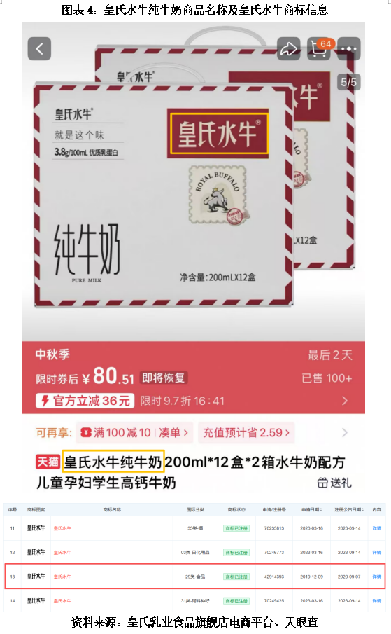 除了产品原料配比不明确,皇氏集团的水牛纯牛奶产品商标合规性也值得关注。