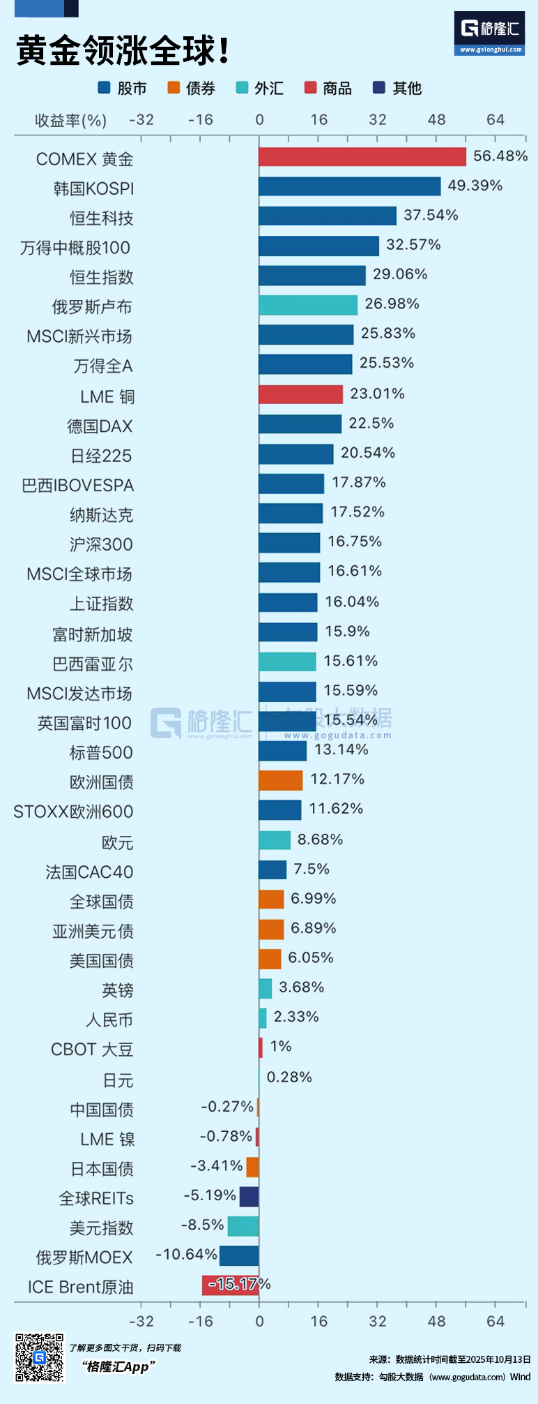 尽管今天金价冲高回落,但拉长时间看,2025年以来,国际黄金确实走出了独立上升曲线,其相对收益也超过了传统股债资产。
