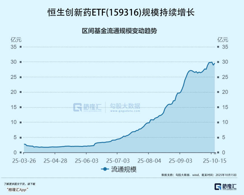 如持续受到资金青睐的恒生创新药ETF(159316),近20日资金净流入额8.49亿元,最新基金规模达29.61亿。