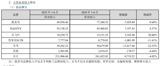 户外板块增长难救场,报喜鸟上半年业绩双降,主品牌表现乏力拖后腿