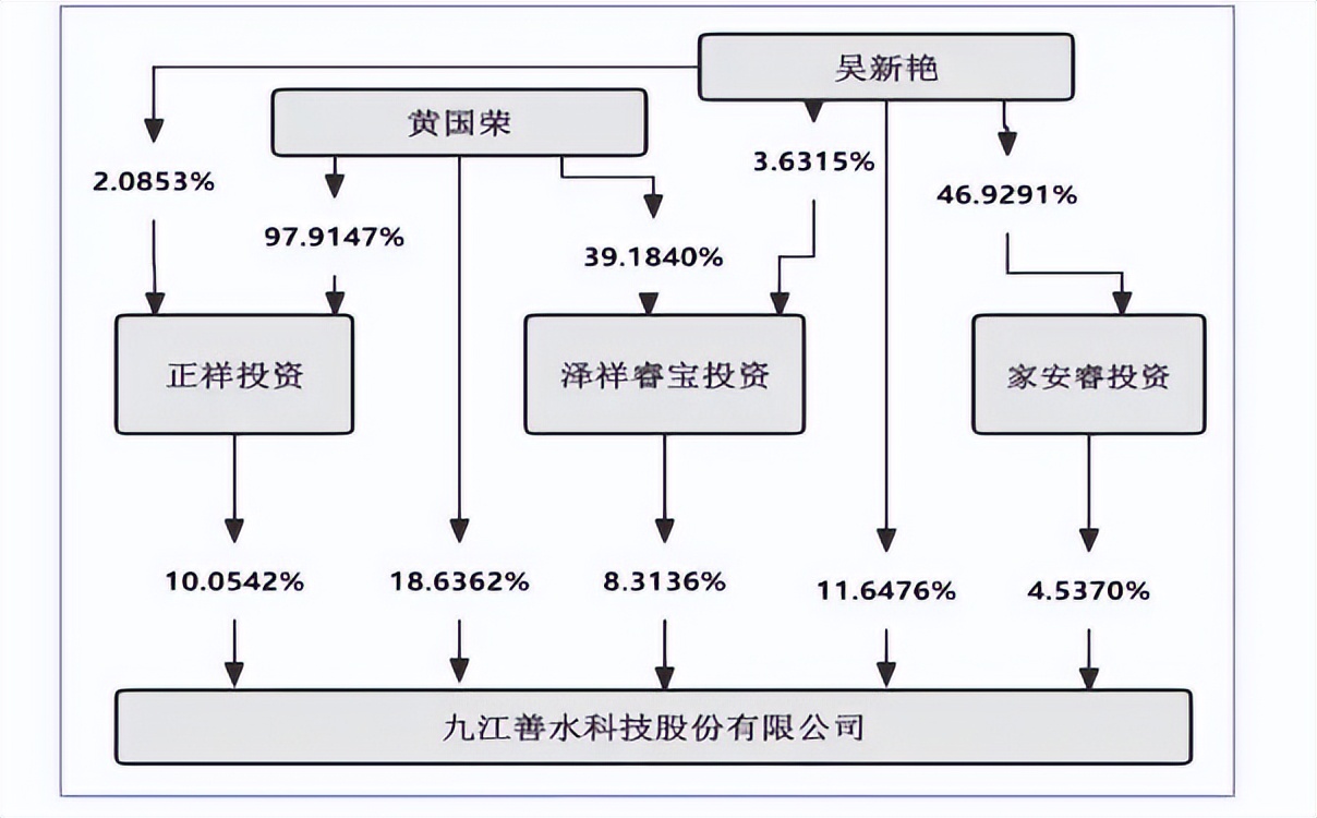 本次权益变动后,双方持股比例随之变化。其中,黄国荣直接持有公司3000万股股票(占总股本的13.9771%),合计直接及间接持有善水科技3022.2万股公司股票(占总股本的14.0806%);吴新艳直接持有公司3500万股股票(占总股本的16.3066%),直接及间接持有公司6856.8万股公司股票(占总股本的31.9461%)。