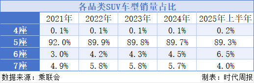 行业普遍认为这个市场还远没有达到峰值。2025年被视为“6座SUV超级大年”,整个细分市场的销量规模有望突破100万辆。全国乘用车市场信息联席会秘书长崔东树向时代周报表示,大三排SUV的好日子至少还有十年。