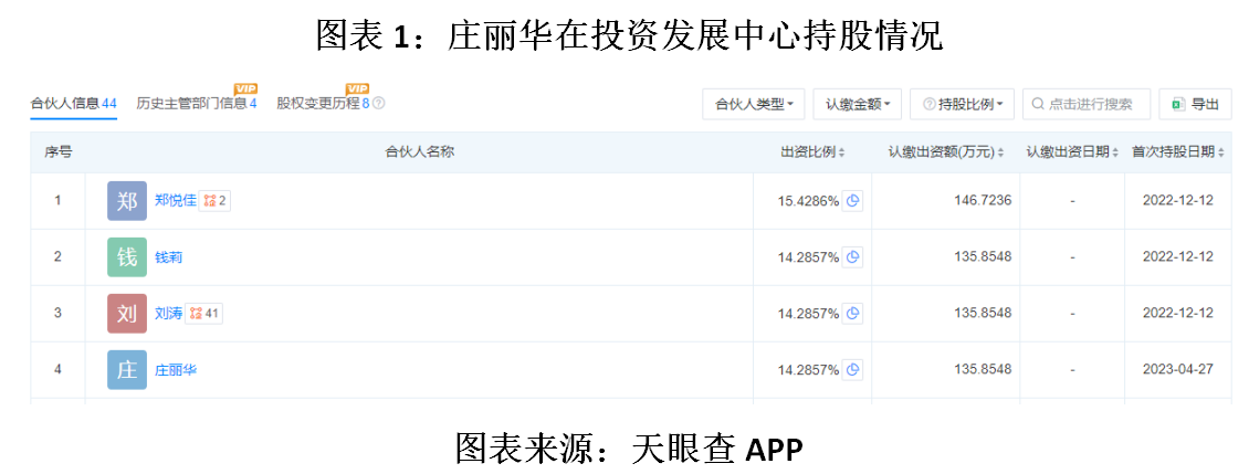 另外,招股书显示,庄丽华通过恒运昌员工持股平台深圳市恒运昌投资发展中心(有限合伙)(下称“投资发展中心”)间接持有恒运昌0.4556%的股权,但是未披露其入股时间及资金来源。