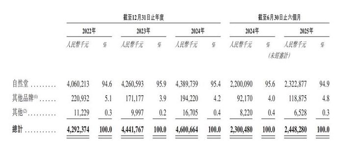 招股书显示,2022年至2025上半年(以下简称“报告期内”),自然堂营收为42.92亿元、44.42亿元、46.01亿元、24.48亿元,其间增速3.48%、3.58%、6.42%。