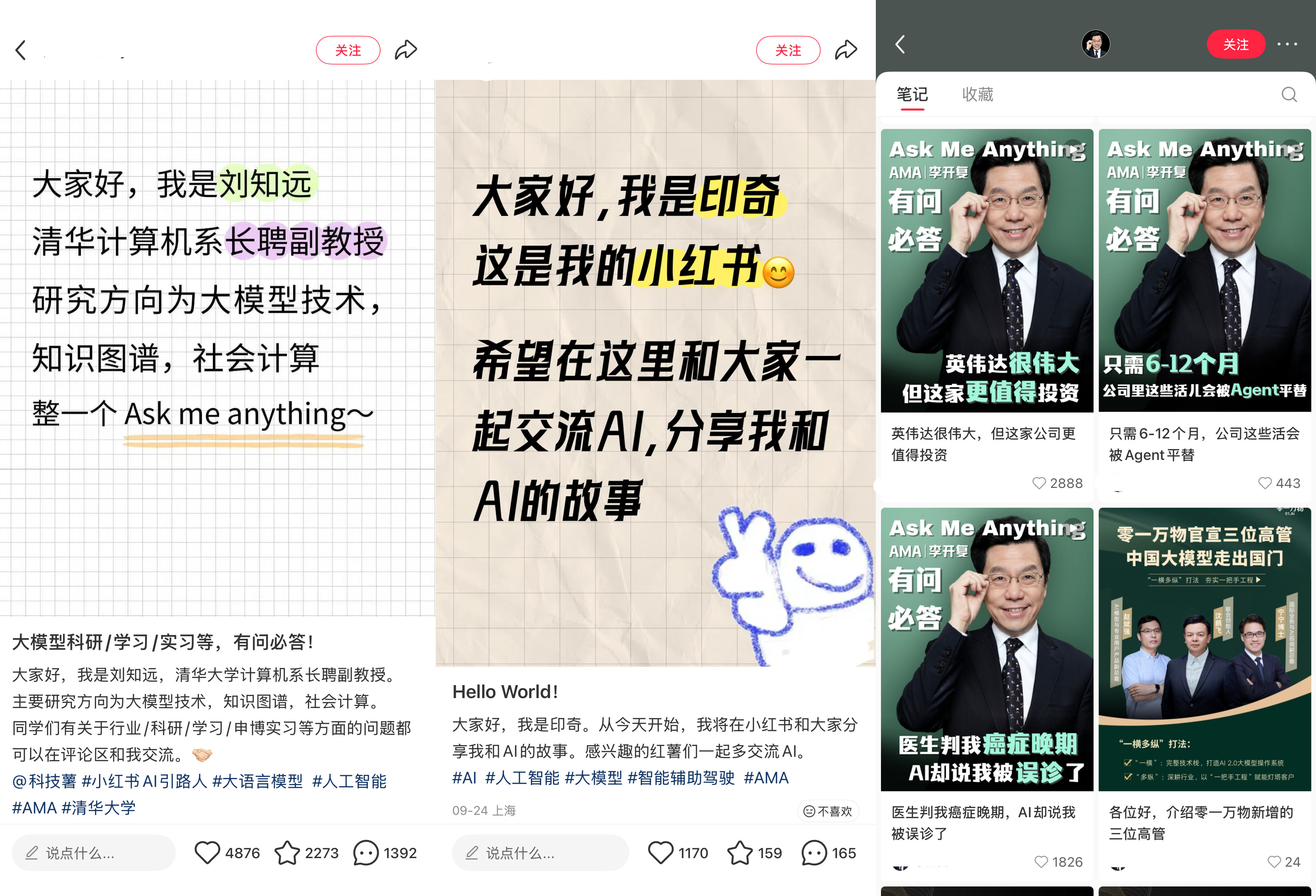 今年9月,多位AI领域有影响力、知名度的研究员、教授、实验室负责人入驻小红书,以AMA的形式积极互动。