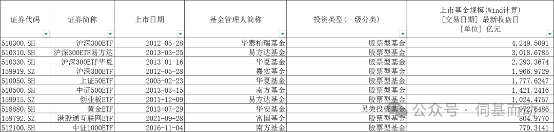 华泰柏瑞沪深300ETF(510300.SH):是2019年12月23日,上交所规模最大的一只沪深300ETF。(下图标橙)