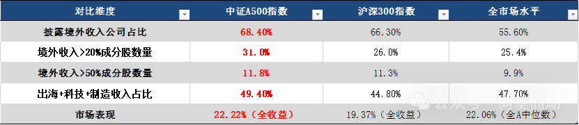 A500成分股收入结构中,出海、科技与制造这三大主题,合计占比高达49.40%。
