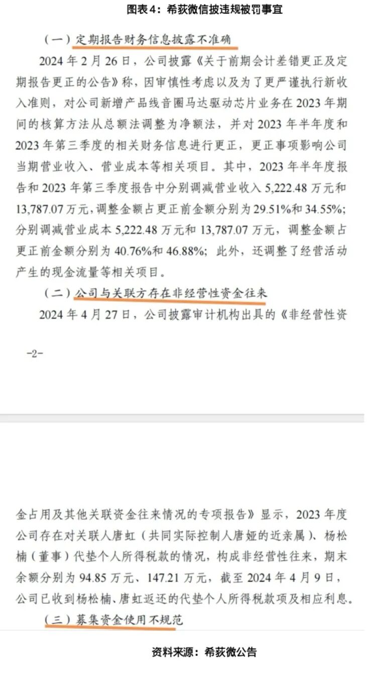 作为收购方的希荻微,自身也存在合规短板。2024年8月,希荻微曾因“定期报告财务信息披露不准确、与关联方非经营性资金往来、募集资金使用不规范”等问题被上交所通报批评,暴露出其在财务合规、信息披露方面的内控薄弱问题。