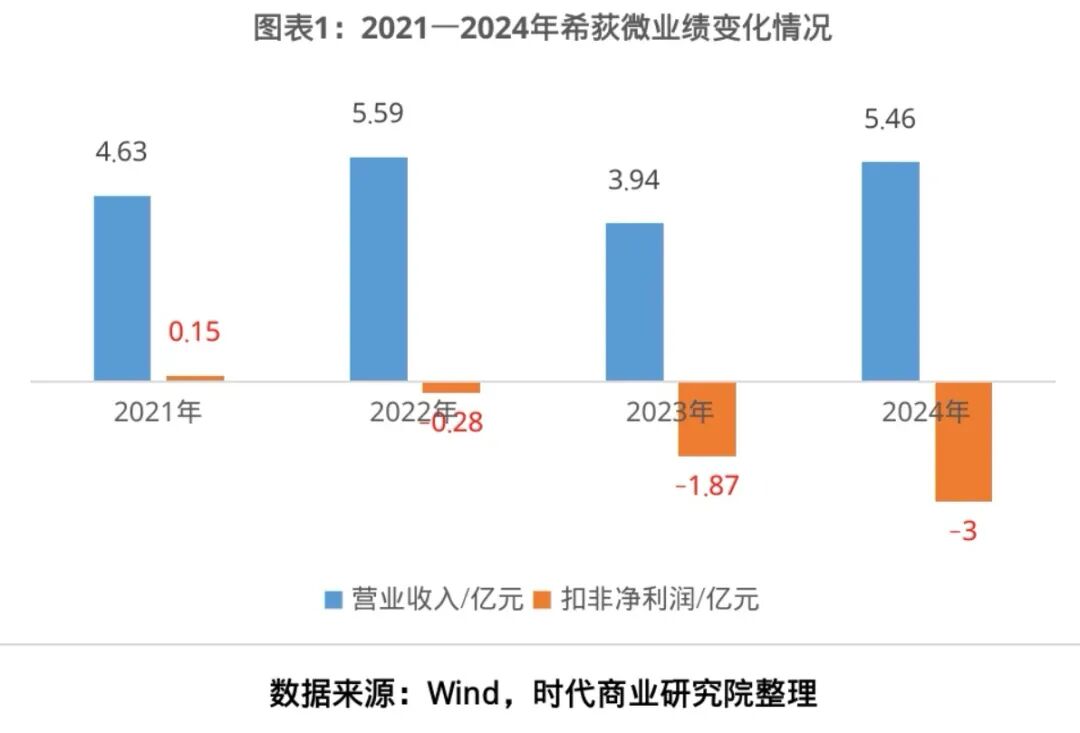 希荻微的业绩变脸始于上市首年。2022年登陆科创板时,该公司扣非净利润从2021年的1534万元骤降至-2761万元,同比大幅下滑280.01%,盈利态势瞬间反转。此后亏损缺口持续扩大:2023年营收同比下滑29.64%至3.94亿元,扣非净利润亏损额攀升至1.87亿元,同比下滑578.24%;2024年营收虽有所回升,但扣非净利润亏损额进一步扩大至3亿元,在亏损泥潭里越陷越深。