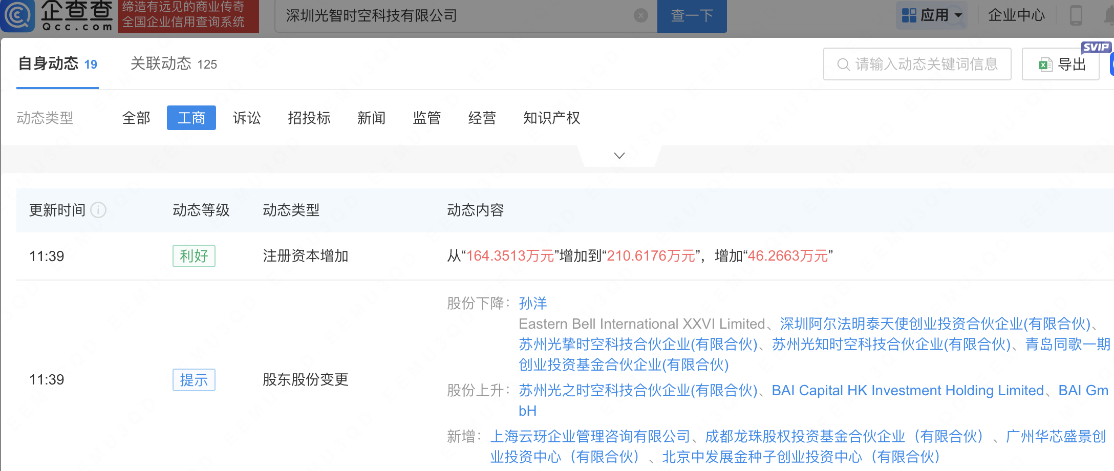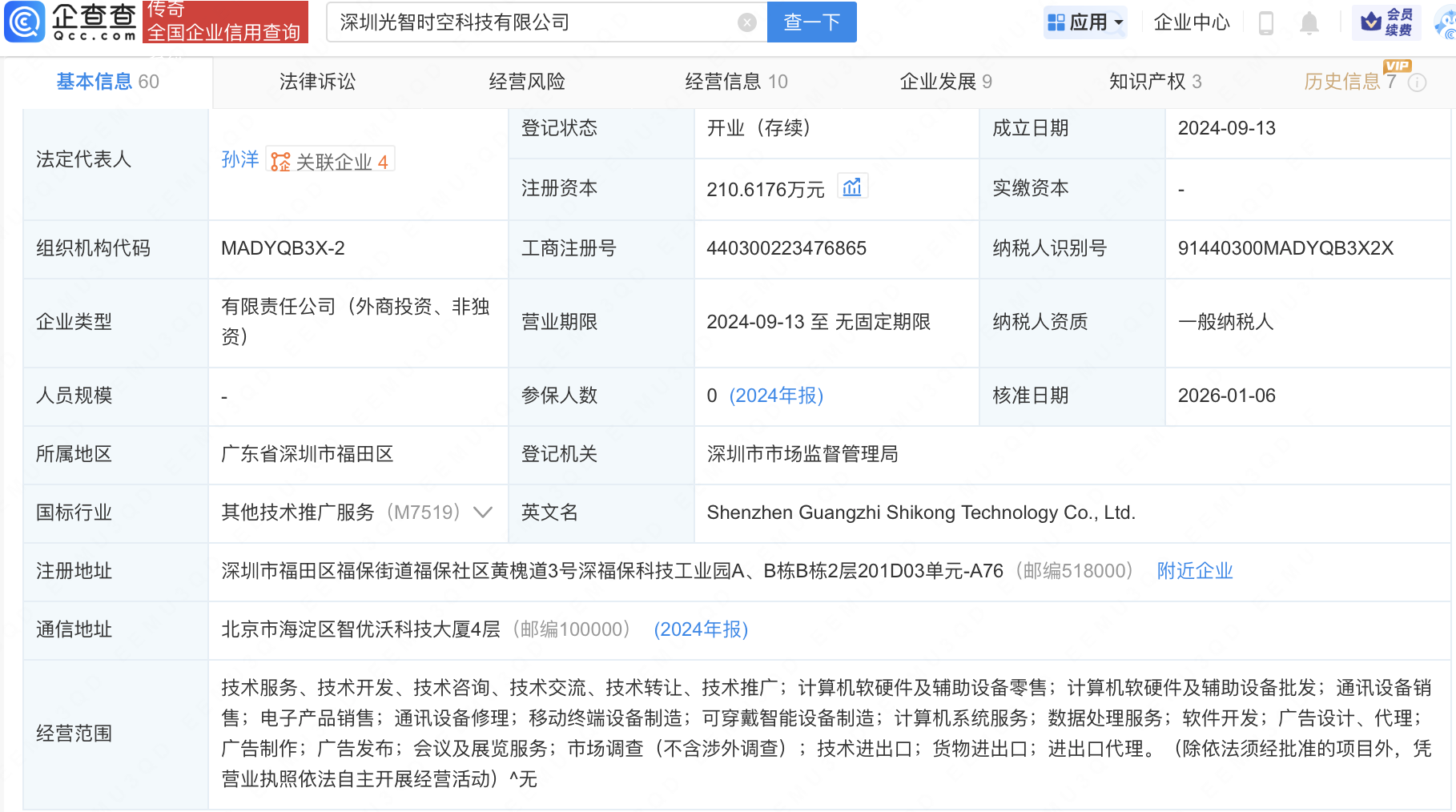 企查查APP显示,近日,深圳光智时空科技有限公司发生工商变更,新增蚂蚁科技集团股份有限公司全资子公司上海云玡企业管理咨询有限公司、美团关联成都龙珠股权投资基金合伙企业(有限合伙)等为股东,同时注册资本增至210.62万元。企查查信息显示,该公司成立于2024年,经营范围包含:移动终端设备制造;可穿戴智能设备制造;计算机系统服务等。据其官网,该公司是一家AI交互设备和平台开发商,致力于构建AI时代的入口级交互设备和平台。