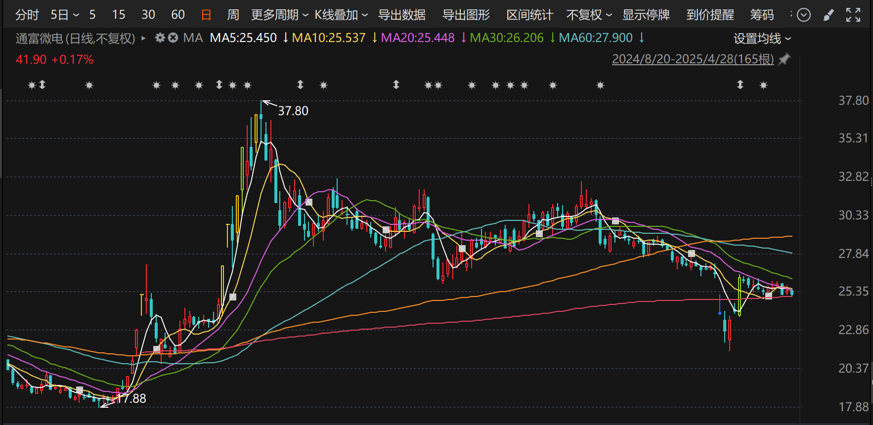 此外,近一年来,通富微电的股价持续走高。截至2026年1月9日收盘,通富微电股价报收41.83元/股,较2025年初上涨了41.56%。