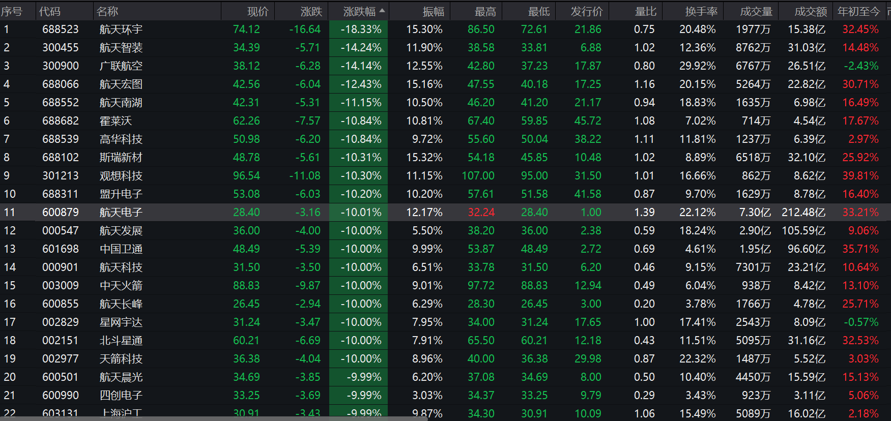 商业航天炒作退潮?板块集体跳水,“25天19板”*ST铖昌停牌核查躲过一劫