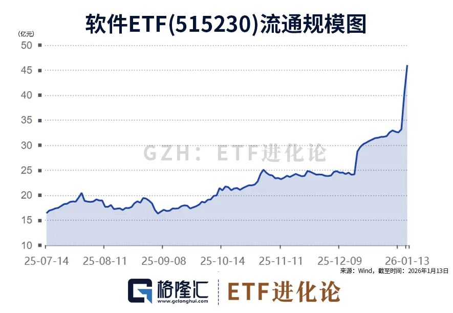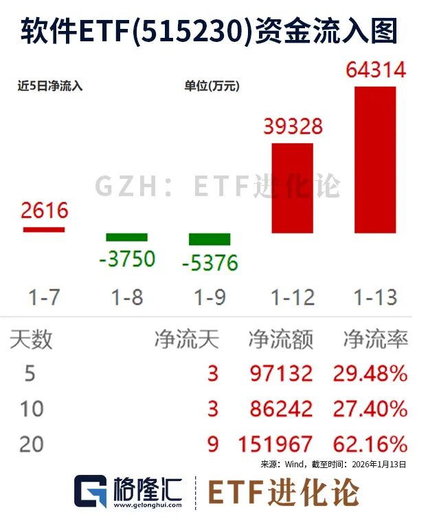开年8个交易日,在横空出世的“GEO”新概念刺激下,资金首先选择了软件、传媒方向,软件ETF(515230)两日获资金净申购10.36亿元。