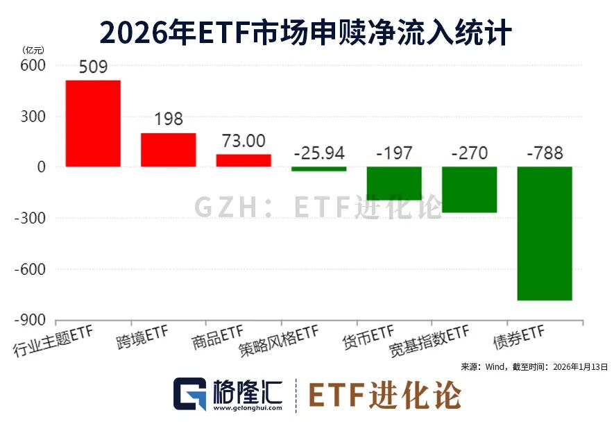 开年7个交易日,行业主题ETF成为净申购最猛的细分ETF类型,在宽基ETF大幅净流出270亿的情况下,狂流入500亿元。