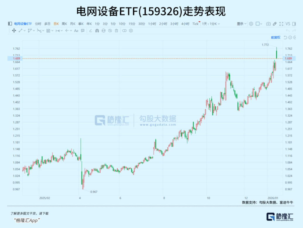 成分股表现强势,带动全市场唯一的电网设备ETF(159326)涨幅达到了2.05%。