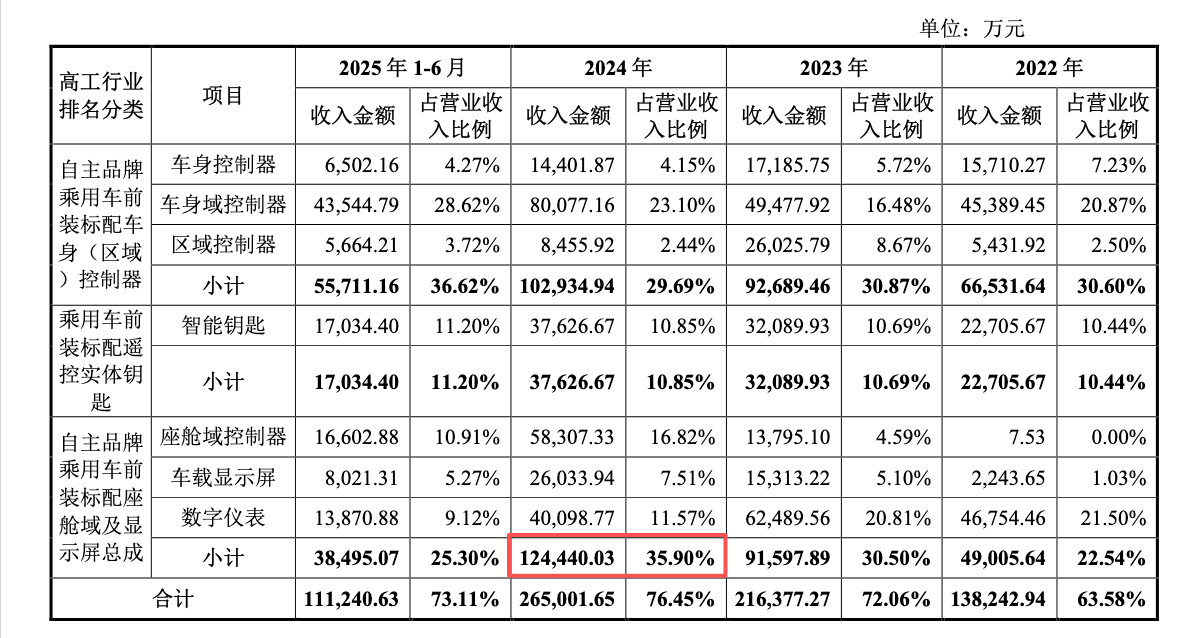 埃泰克通过不断优化业务结构,实现了从单一产品向多产品线的布局。公司业务覆盖车身域、智能座舱域、动力域及智能驾驶域四大功能域,形成了完整的汽车电子产品体系,有效分散了单一产品线带来的经营风险。