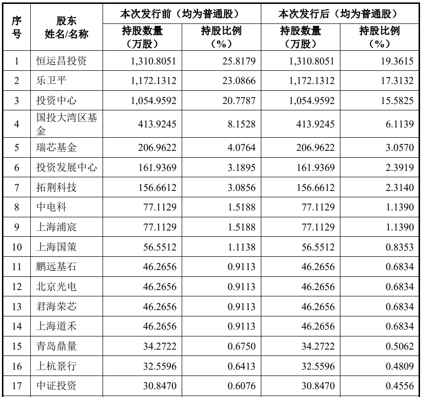 值得注意的是,拓荆科技不仅是恒运昌的第一大客户,还入股恒运昌。招股书显示,截至IPO上市前,拓荆科技拥有恒运昌156.6612万股股份,持股比例为3.0856%,是公司前十大股东之一。