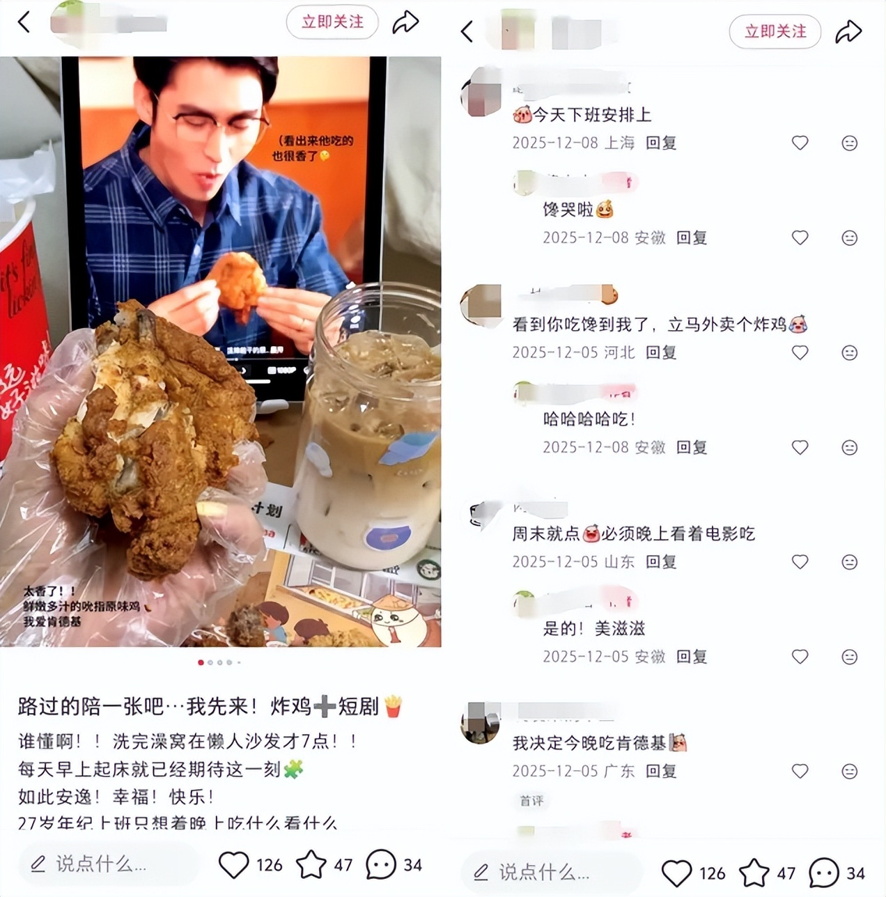王道铁吃炸鸡名场面吸引用户互动 图源:小红书