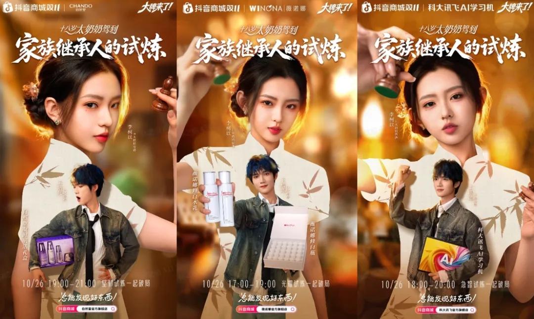 以《太奶奶》系列为例,自第一部走红后,品牌合作持续增加,花样也越来越多。《太奶奶 3》牵手2025抖yin商城双11“大牌来了”活动,与科大讯飞、自然堂、薇诺娜等品牌展开合作,通过专场直播、粉丝互动助力品牌抢下大促热度。《太奶奶 4》尚未开播,已有多个品牌率先押注,除了前面提到的良品铺子小剧场外,可丽金也和剧中主演王培延合作,借抖yin商城年货节契机推出专场直播、宠粉专属产品等新玩法。
