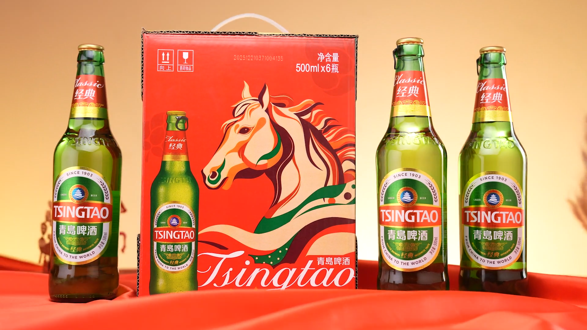 农历丙午马年前夕,青岛啤酒“鸿运当头马年生肖版”、2026马年生肖文创版产品“花骢献瑞”以及青岛啤酒海外版马年新品均换“新装”,青岛啤酒经典和纯生等各类产品也换了“马年新春节庆装”。