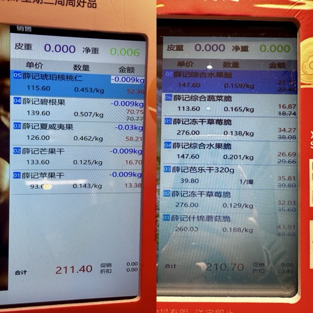 时代财经走访时注意到,顾客进店消费普遍超过50元,其中不少顾客客单价能达到200元以上,购买品类主要集中在果脯、冻干水果和贵价坚果等产品。有消费者就曾表示:“没百元都出不来!”面对高定价的争议,薛记炒货曾解释称是“原料与工艺的双重高成本所致”。