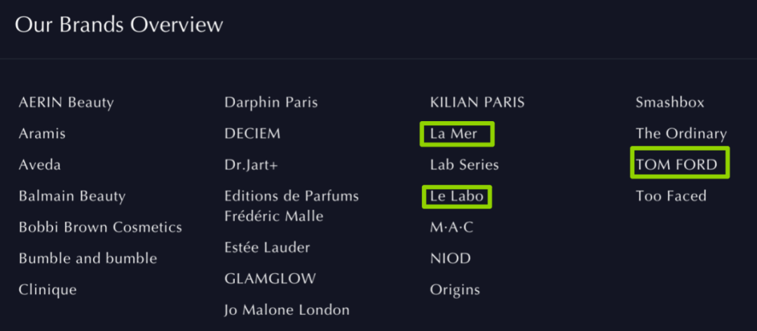 我们在《SK-II为宝洁中国发「年终奖」》一文中,也提到了宝洁近似于雅诗兰黛的打法。事实上,雅诗兰黛得益于赚钱的高端美妆线品牌数量略多于宝洁,在这一周期下,甚至更胜一筹。