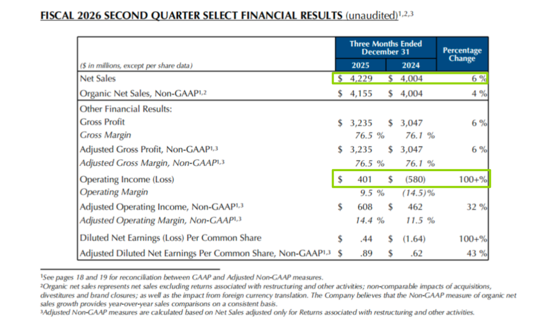 将时间调回2025财年,雅诗兰黛全年亏损高达11.33亿美元,同比暴跌390%。而仅仅过去了两个季度,其业绩便实现V型反弹,这无异于给一度“溺水”的集团做了一次成功的“心肺复苏”。