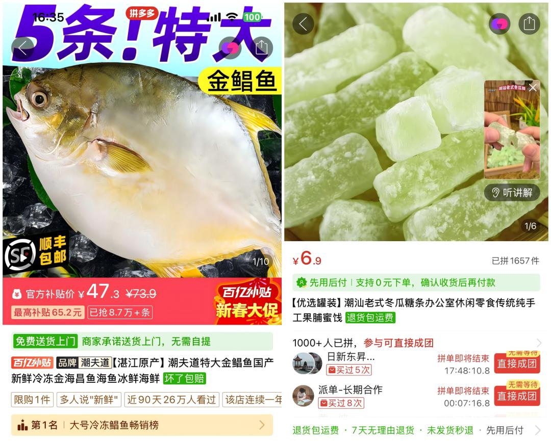 与此同时,依托“千亿扶持”计划中的“多多好特产”“新质供给”“电商西进”等专项,拼多多深入产地源头,助力农货商家洞察春节新消费趋势,全面焕新年货供给。