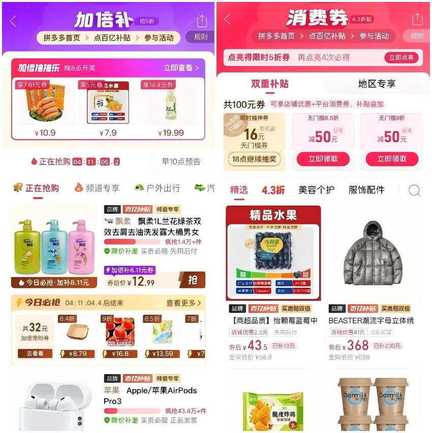 活动期间,拼多多百亿补贴频道升级推出三大重磅活动,全方位提升年货补贴力度。