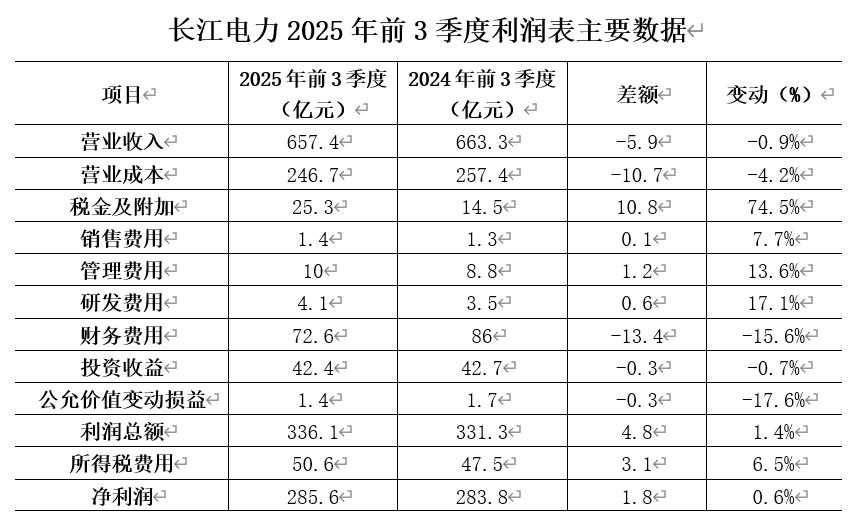 异常增加的还有所得税费用,利润总额增加4.8亿元、所得税增加3.1亿元,增量税率高达65%。这是长江电力有意思的地方,前三季度乌东德、白鹤滩水电站少发电1.5%左右,三峡、葛洲坝水电站多发电2.5%左右,先建的三峡、葛洲坝盈利能力强、税率为25%,后建的乌东德、白鹤滩盈利能力弱、税率为7.5%,相当于本来是低税率的来水流到了高税率的三峡水库,发电地域结构调整导致所得税增加。25年全年也存在这种情况,且结构变化更突出。