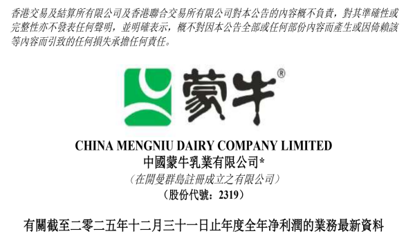 面对行业变局,蒙牛始终坚定推进“一体两翼”发展战略,积极应对外部市场环境变化,持续夯实品牌根基,稳固市场份额,并通过创新产品布局不断强化核心竞争力,致力于让每一位消费者“喝上奶、喝好奶、喝对奶”。蒙牛在公告中也表示,随着原奶价格环比企稳,需求持续改善,2025年下半年以来液态奶收入环比表现稳健,实现企稳回升; 同时,鲜奶、奶粉、奶酪等品类全年均取得双位数增长并保持良好增长势头,业务结构呈现多元化发展趋势。