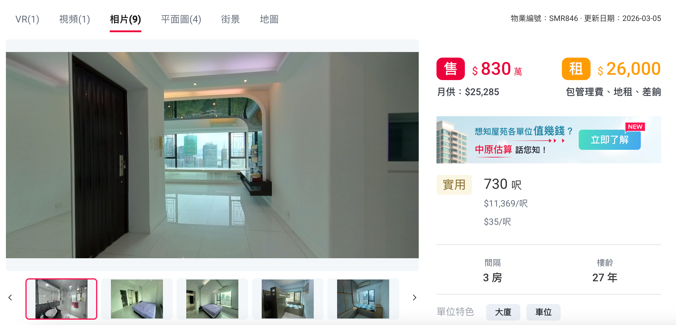 中原地产在售的“供平过租”单位