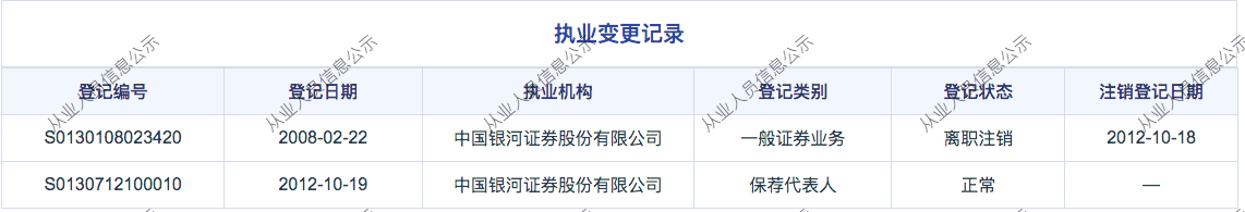 保代周晨曦曾任职5家券商