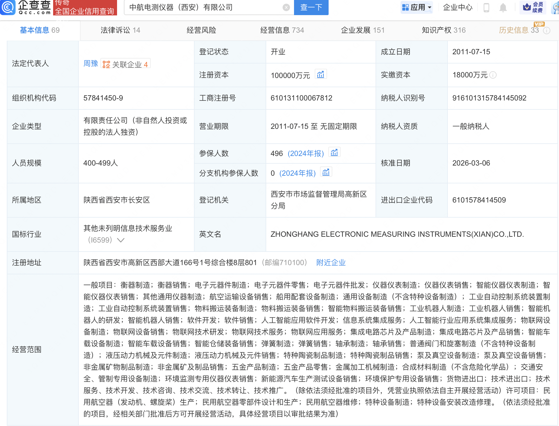 企查查APP显示,近日,中航电测仪器(西安)有限公司发生工商变更,注册资本由1.8亿元增至10亿元。企查查信息显示,该公司成立于2011年,经营范围包含:智能机器人的研发;智能机器人销售;软件开发;人工智能应用软件开发等,由中航成飞(302132)全资持股。