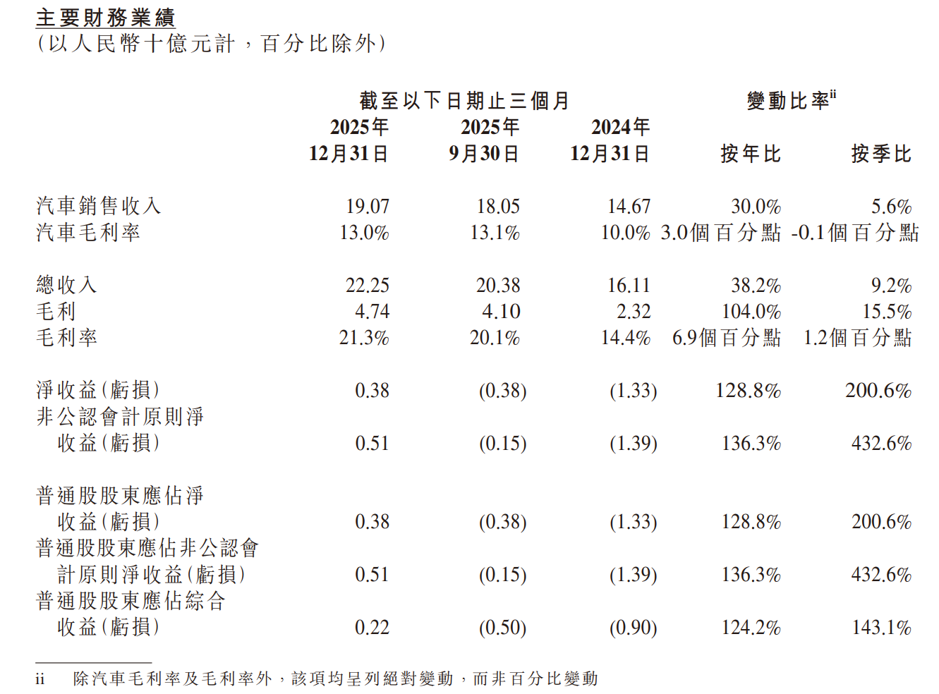 2025年第四季度,小鹏汽车总营收222.5亿元,同比增长38.2%;净利润3.8亿元,实现单季度盈利。这也是小鹏汽车成立至今首次实现季度盈利。