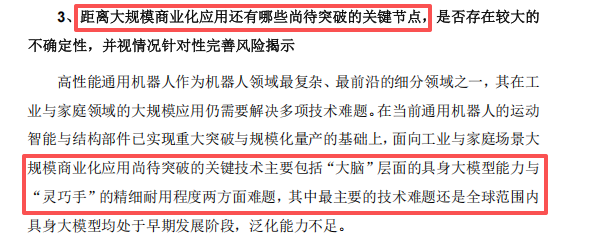问询函回复中宇树也坦言,“练手活” 与 “练脑子”是人形机器人实现大规模商业化的两大核心瓶颈。