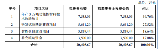此次 IPO 计划募资 2.05 亿元,其中大部分资金仍用于扩产,预计新增 3 万吨产能,在现有基础上进一步提升五成。