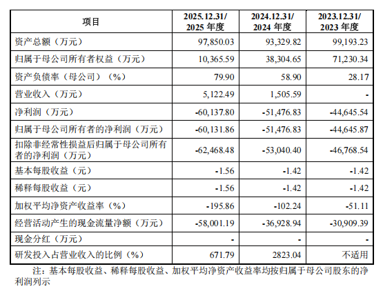 高额的研发投入叠加飙升的销售费用,直接导致公司亏损连年扩大,2022年至2025年,泰诺麦博分别亏损4.29亿元、4.46亿元、5.15亿元、6.01亿元,累计未弥补亏损突破14亿元。