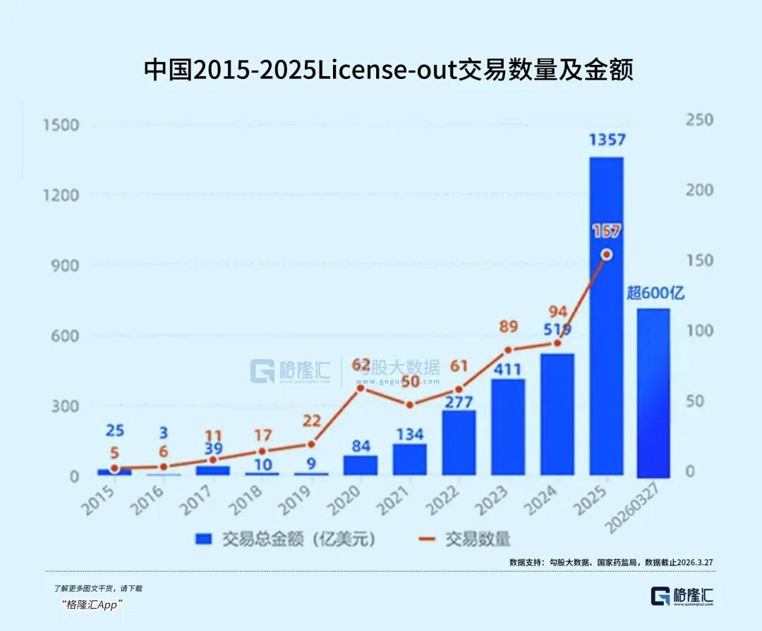 国家药监局最新数据显示,今年前三个月我国创新药对外授权(BD)交易总额已超过600亿美元,接近2025年全年1357亿美元总额的一半。