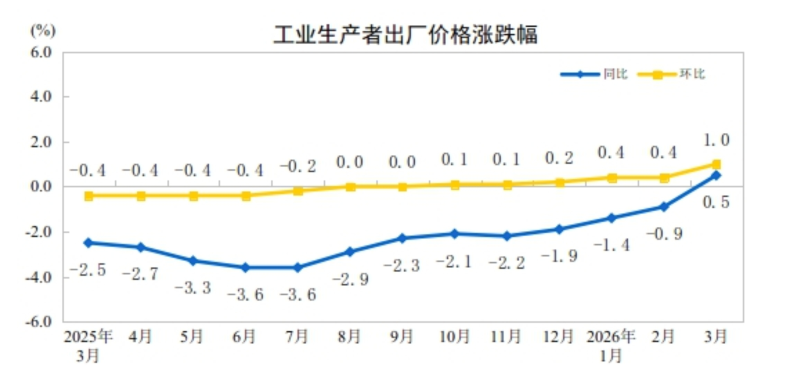 3月PPI同比由负转涨(图源:国家统计局官网)