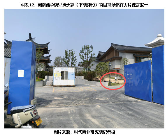 3月23日,时代商业研究院记者实地探访厦门市翔安区闽南佛学院异地迁建(下院建设)项目现场。该项目是诚邦股份披露的在建重大项目,该公司承接范围仅为景观绿化工程。当日,记者来到诚邦股份下院建设项目景观绿化工程项目部,在项目部的不远处则是下院迁建项目的施工现场。