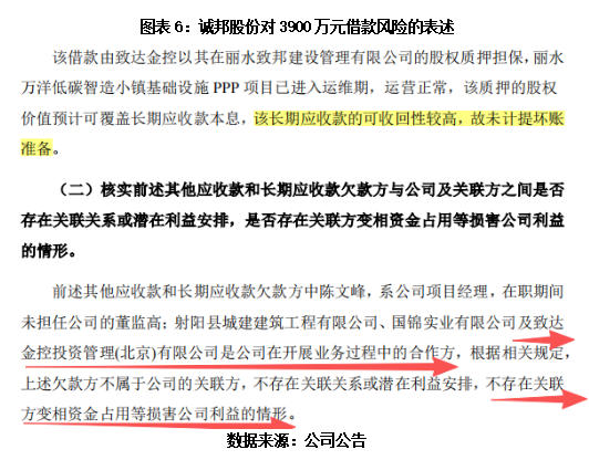 然而,诚邦股份曾在回复上交所监管问询函的公告中明确表示,该笔3900万元长期应收款的可收回性较高,故未计提坏账准备。