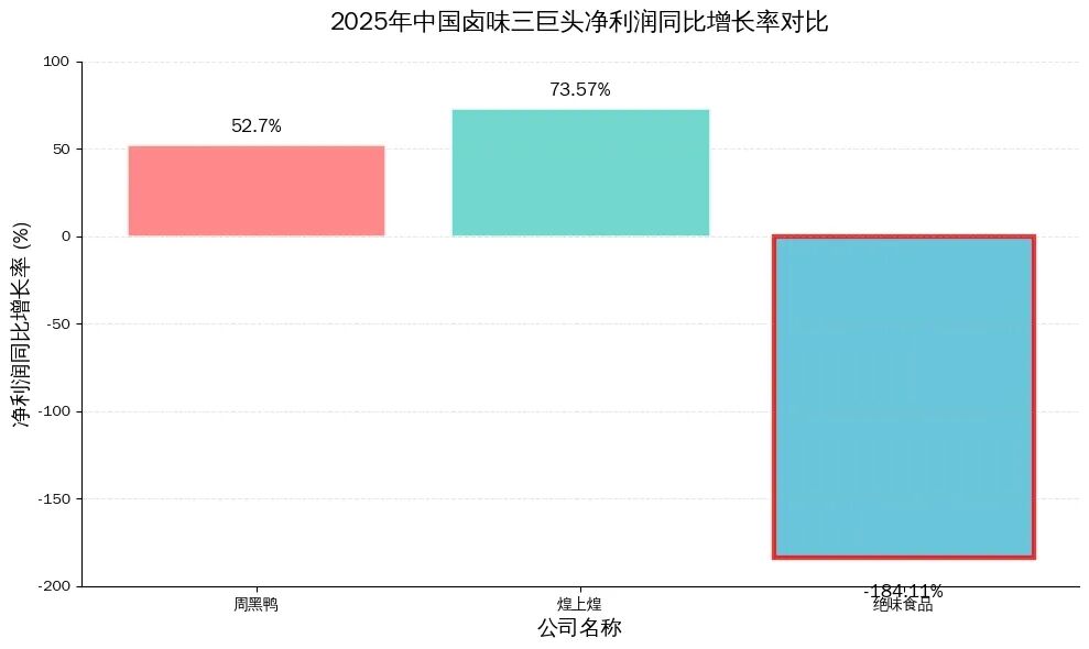 2025年,中国休闲卤味赛道迎来了格局剧变的一年。当周黑鸭、煌上煌凭借战略调整实现净利润逆势回暖时,曾经的“卤味龙头”绝味食品却交出了上市九年来最惨淡的一份成绩单。