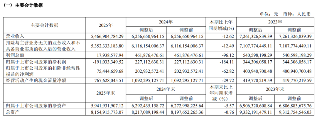 全年实现营业收入54.67亿元,同比下滑12.62%;归母净利润亏损1.91亿元,同比大幅下降184.11%,迎来上市以来首次年度亏损。