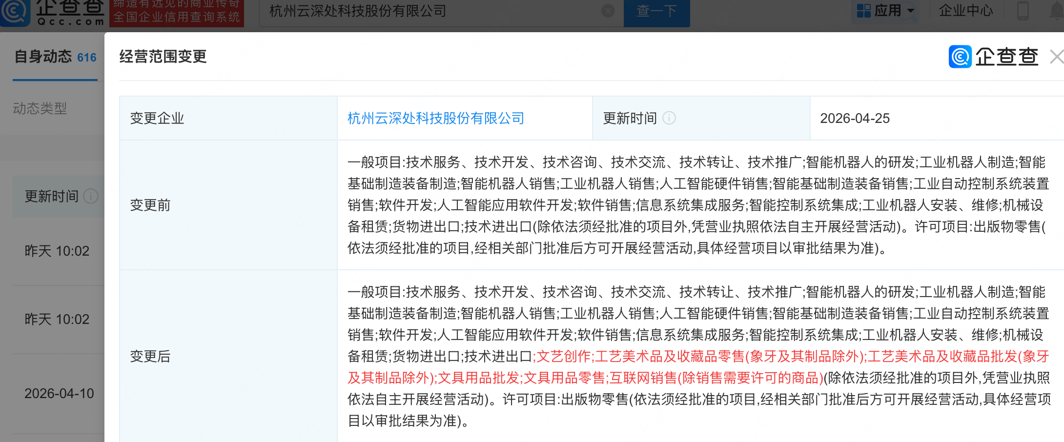 云深处科技新增工艺美术品相关业务