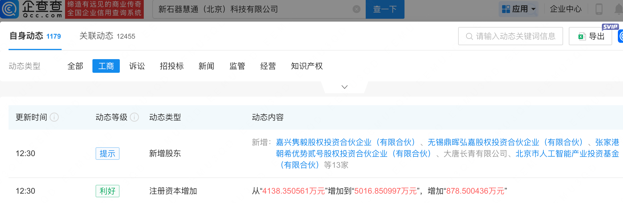 企查查APP显示,近日,新石器无人车关联公司新石器慧通(北京)科技有限公司发生工商变更,新增北京市人工智能产业投资基金(有限合伙)、北京中移数字新经济产业基金合伙企业(有限合伙)等为股东,同时注册资本增至5016.85万元。企查查信息显示,该公司成立于2018年,经营范围包含:人工智能应用软件开发;物联网设备制造;人工智能行业应用系统集成服务;服务消费机器人制造等。