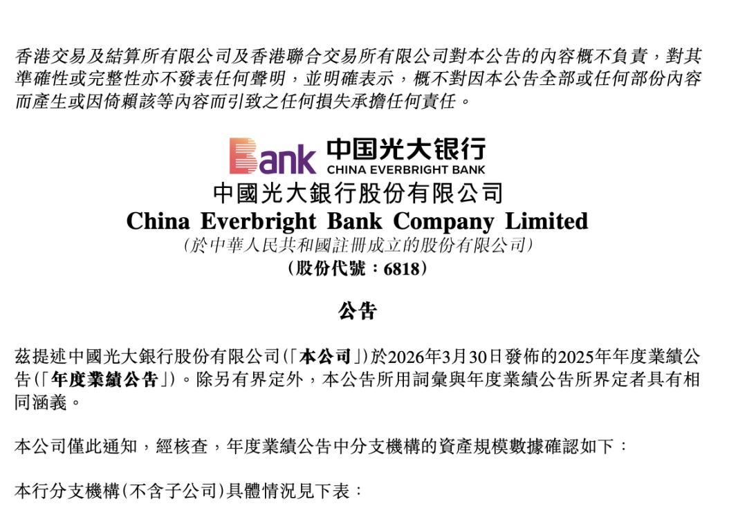 近日,光大银行分别在A股、H股披露2025年年报。本该严谨一致的分支机构资产规模数据,却出现了令人瞠目的差异。